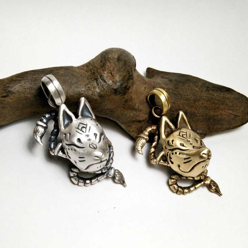 大狐面ペンダントⅡ-brass