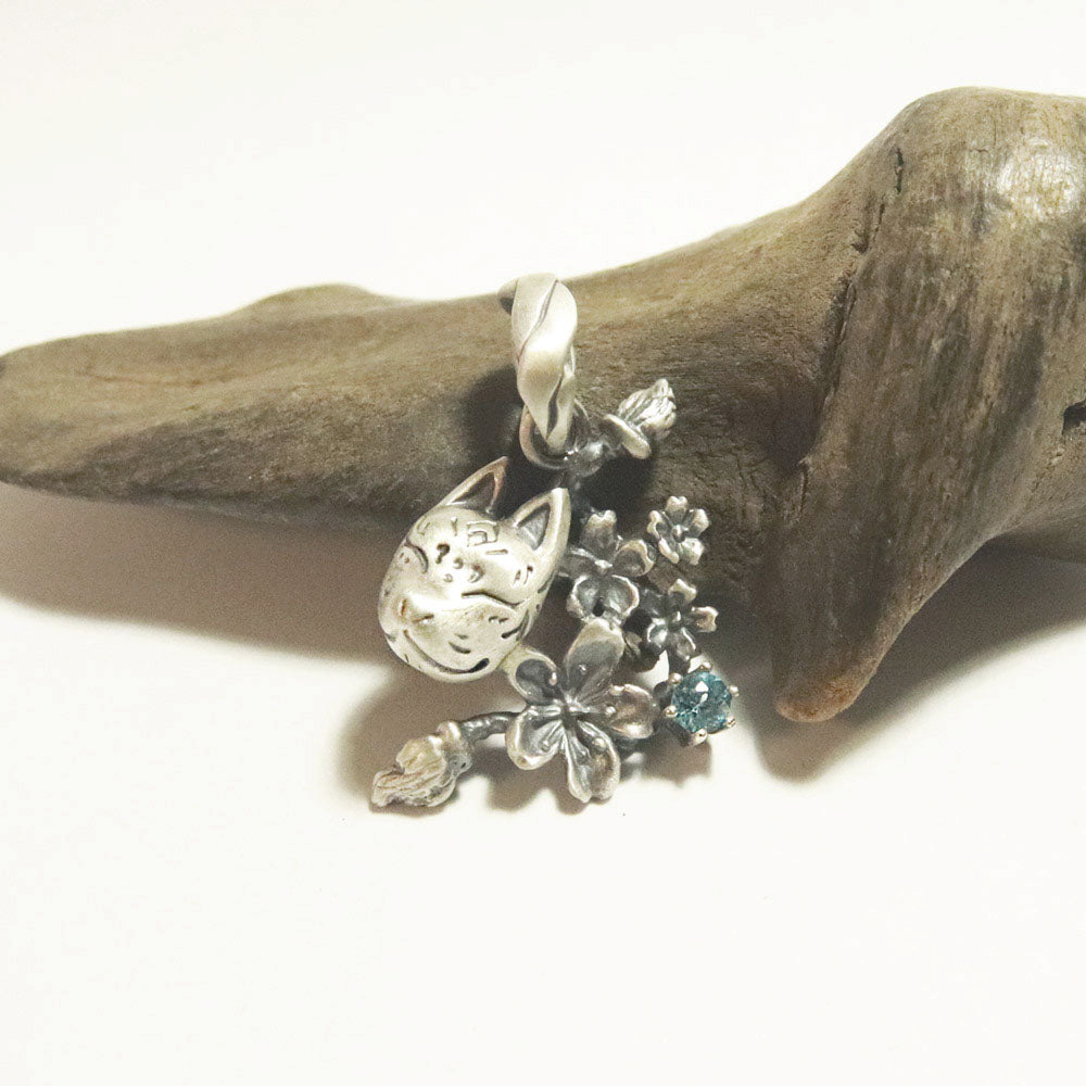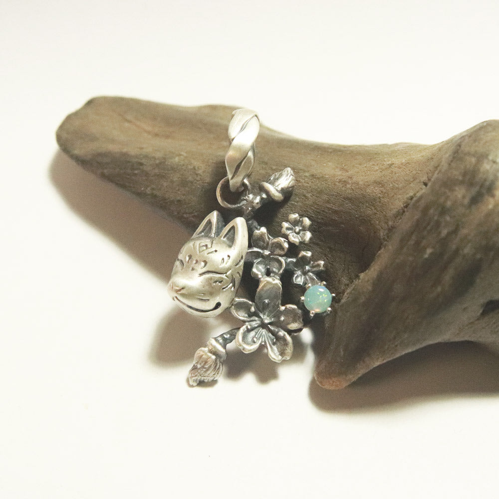 桜とともに狐面が舞う情景をモチーフにしたデザインのペンダントトップ。